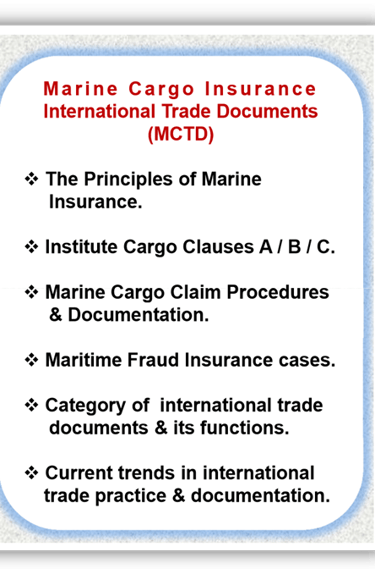 Competency in marine cargo insurance & international trade documentation.